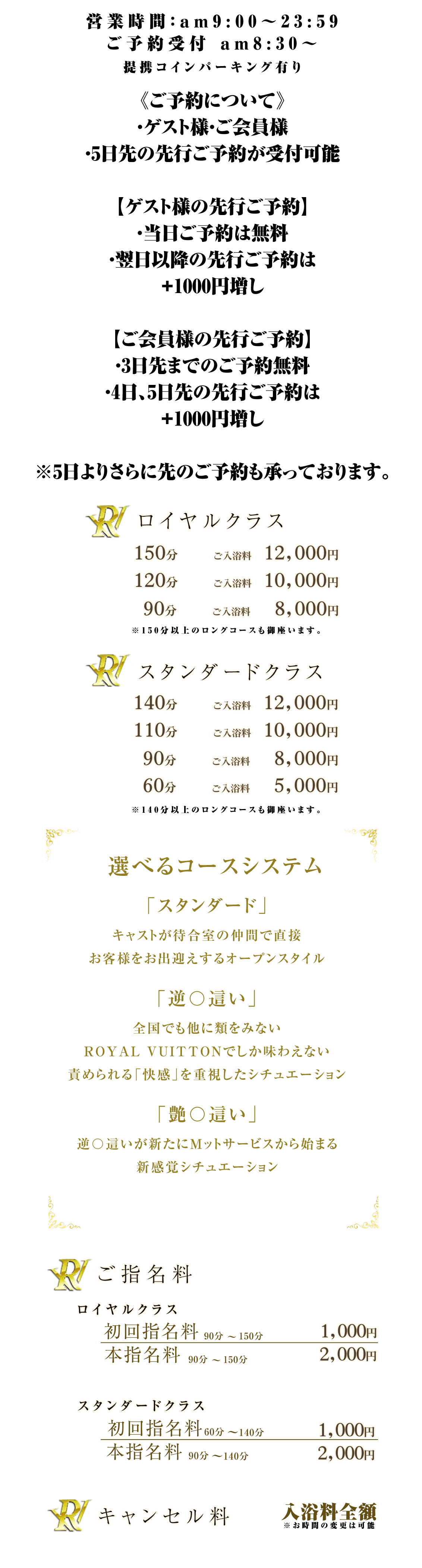 全国に他に類を見ないROYAL VUITTON でしか味わえない「責められる快感」を重視したシチュエーション。